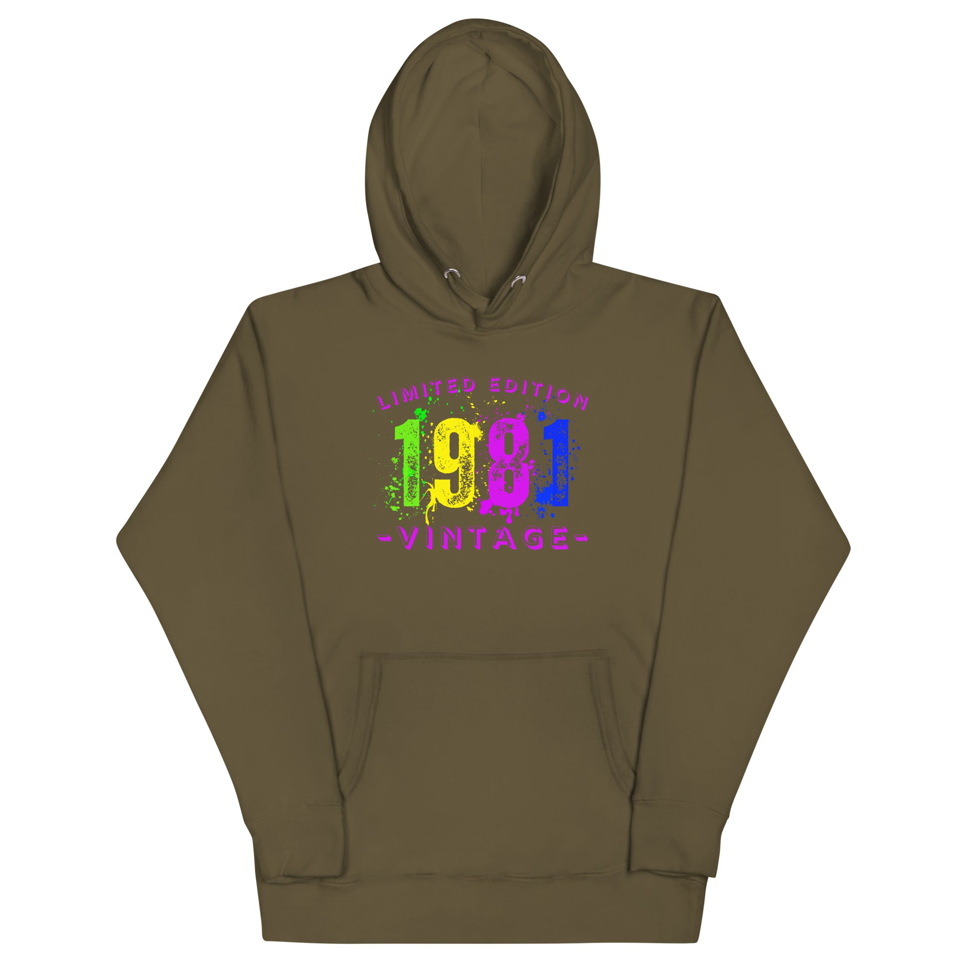 1981 Limited Edition, Vintage Unisex Hoodie Sweatshirt: A nod to nostalgia. Dive into the retro vibes with this classic year-printed Hoodie. Perfect for those who cherish memories or celebrate a '81 milestone. Timelessly stylish!